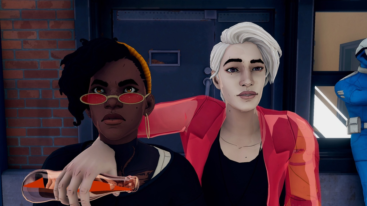 Не у всех игр получается здорово косить под комиксы, но у авторов «Пылерожденных» вкус определенно есть. Картинка Dustborn вышла чертовски стильной и не в последнюю очередь из-за «рисованного» интерфейса. «Пузыри», надписи-звуки, чиби-аватарки персонажей, шрифты — всё это выглядит не просто красиво, но еще и гармонично. Да и персонажи словно сошли со страничек журналов про супергероев — яркие незамысловатые костюмы (пусть и без облегающих трико), маски и всякие прибамбасы вроде биомеханических рук, биты-бумеранга или выдуманного полыхающего меча. А еще тут ретрофутуризм!