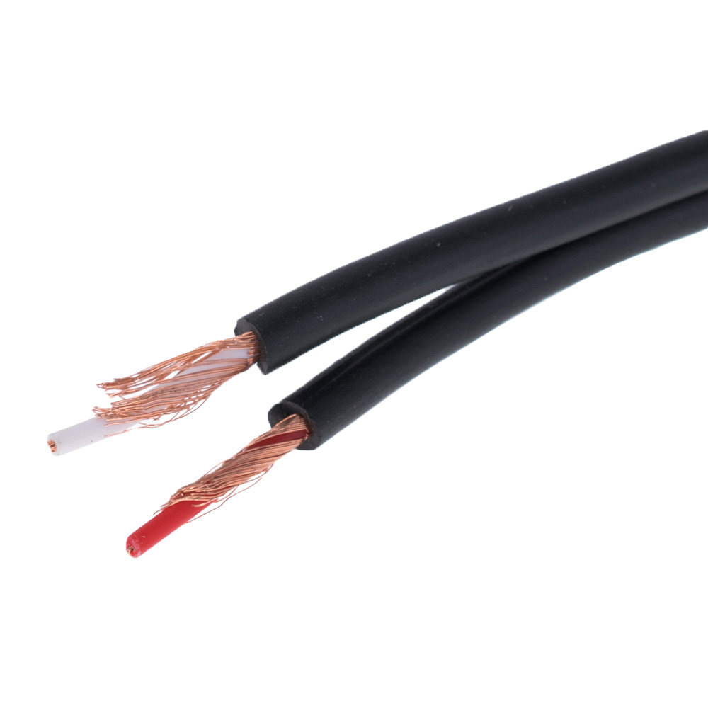 Дальше шли провода, сделанные из двужильного коаксиального (каждая жила (многожильная, пардон за тавтологию) в отдельной оплётке) кабеля вот такого типа (причём толщина внутренней жилы была весьма небольшая, может 0,75, может 0,5):