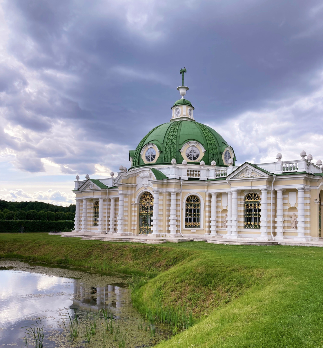 Грот в Кусково - это единственное сохранившееся здание России XVIII века, отделанное раковинами и перламутром. Истинный шедевр архитектурного искусства, который пленяет своей загадочностью и романтическим очарованием, уютно расположен на берегу Итальянского пруда. Моду на гроты как часть садово-парковой архитектуры в Россию завез Пётр I. Эти павильоны имитировали естественные пещеры и зачастую выступали в роли оформления для источников, прудов или фонтанов. Вдохновившись европейскими гротами, Пётр I замыслил подобную постройку для Летнего сада в Санкт-Петербурге и даже согласовал её проект, но первый отечественный грот возвели уже после кончины императора. Известно, что Грот в Кусково сначала был деревянным, изображение или планы которого не сохранились. Автором изящного каменного сооружения в стиле рококо стал архитектор из крепостной семьи, принадлежавшей Шереметевым - Фёдор Аргунов. Помимо отделки Итальянского домика, он спроектировал в Кусково кухонный флигель и каменную оранжерею