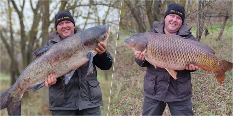 В Минске рыбак поймал огромного сазана на 18 килограмм, а затем вытащил такого же толстолобика
