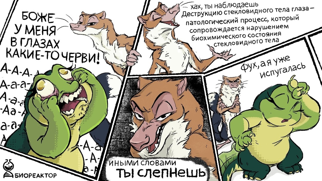 Говоря «на пальцах», стекловидное тело — это прозрачный студень, лежащий между хрусталиком и сетчаткой глаза. Он состоит по большей части из воды. Чтобы она не растекалась, существуют специальные белковые нити, вязкая гиалуроновая кислота (которую очень любят косметологи), сывороточны