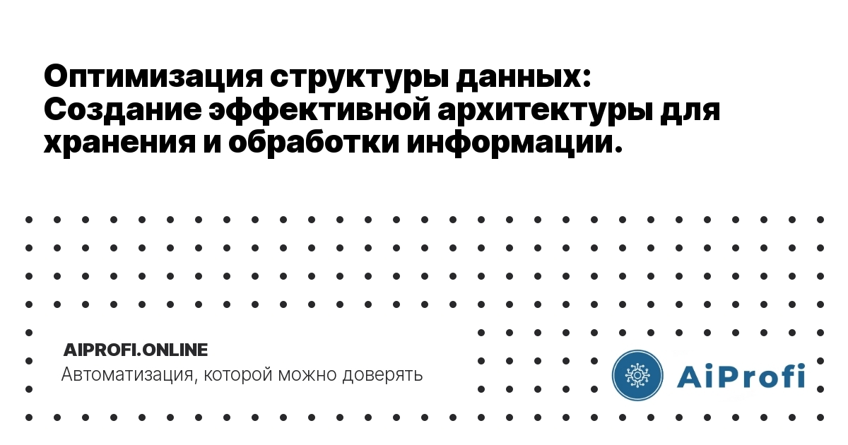 Оптимизация структуры данных В современную эпоху, когда искусственный интеллект и нейросети быстро развиваются, эффективная архитектура данных приобретает критическую значимость. Это особенно актуально в контексте внедрения нейросетевой автоматизации в сферы продаж и услуг. Компании, такие как Aiprofi.online, активно занимаются разработкой и управлением корпоративными датасетами. В данной статье обсудим ключевые аспекты оптимизации структуры данных с целью повышения эффективности их хранения и обработки. <h2>Проектирование архитектуры датасета для маркетинговых коммуникаций</h2>
