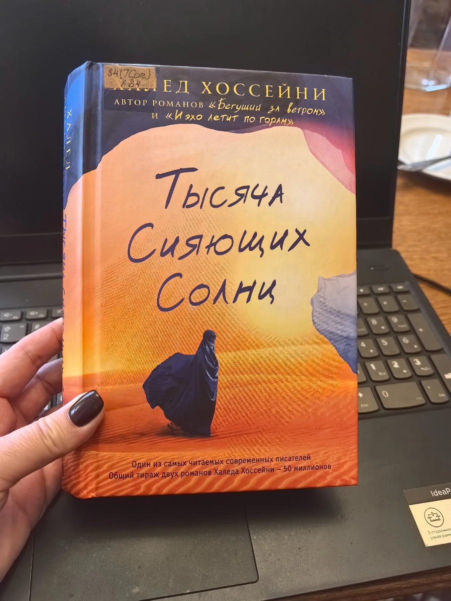 Давно мне так не удавалось почитать. Взахлеб, без возможности остановиться, триста страниц за 8 часов. И ночь не страшна, как не знать, что же дальше там будет. Халед Хоссейни «Тысяча сияющих солнц». Взяла в библиотеке санатория, «руки, что называется потянулись». Непростая книга: про войну и судьбы женщин, но живая настолько, что перед моими глазами были не буквы, а эпизоды фильма. Афганистан, исламская страна, бесконечная смена властей и жизнь двух женщин... Когда я начала читать, я даже не поняла, какой это период. Года советские, но жизнь женщины как в средние века. Древняя культура, великая история этих мест — и раз за разом ввергнутые в пучину мрака диких людей. Судьба двух женщин, разных, жизнь которых соединила их не по доброй воле. Война, смерти, первая и вторая жена, ненависть друг другу. Но какой бы не была эта судьба, две женские природы соединенные в материнстве и борьбе с насилием мужчин — нашли свое соединение. Когда читаешь, невольно думаешь о том, что читаешь