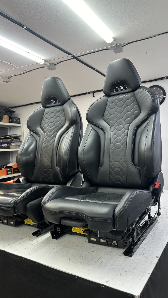 Автомобиль BMW X4 нашего постоянного клиента. Он всегда приезжает к нам с новыми идеями и мы ради их воплотить! В этот раз мы ему меняли элементы в сиденьях, сделали в М стиле. Добавили полоску на подголовниках и синюю с красным полоску на спинки сидений. Руль, кстати, тоже наша работа!
