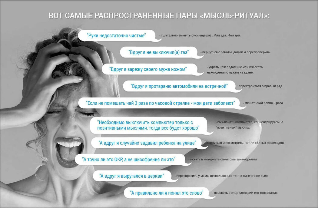 При ОКР навязчивые мысли воспринимаются как чужеродные или это могут быть тяжелые воспоминания, причиняющие страдания их носителю.