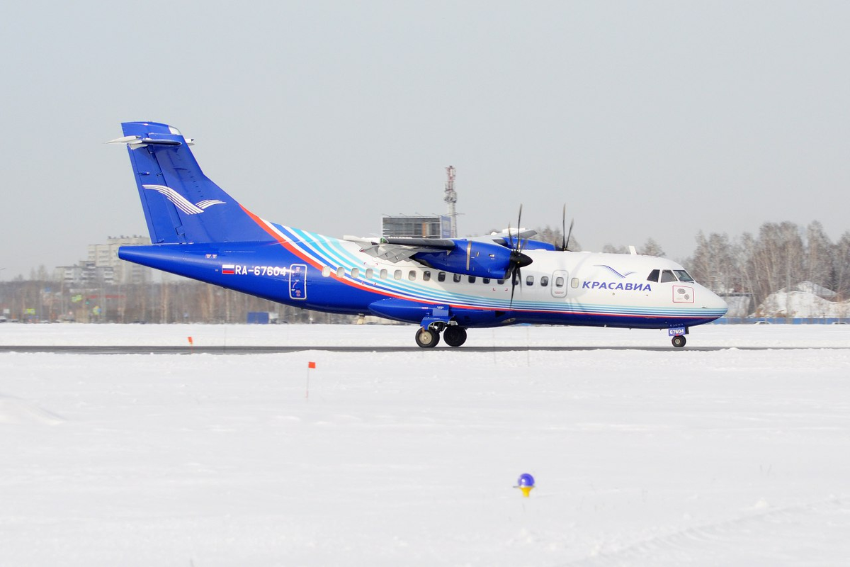 Свежеокрашенный в новую ливрею лайнер ATR-42 а/к "КрасАвиа" прибыл в Омск ✈