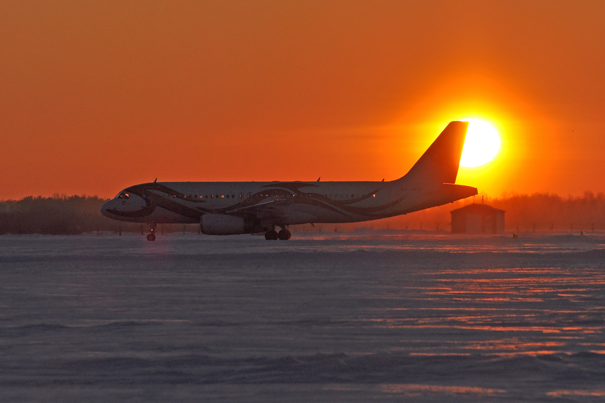 Наше авиационное хоккейное турне за интересными бортами в чемпионате КХЛ продолжается. В День птиц, к нам снова пожаловал "Золотой Феникс" "Меридиана". С часовой задержкой - в самый момент заката. RA-73320 - Airbus A320-232 - Meridian Avia ex VQ-BIS носит в единичном экземпляре одну из красивейших ливрей. Согласны? Привез ХК "Автомобилист"
