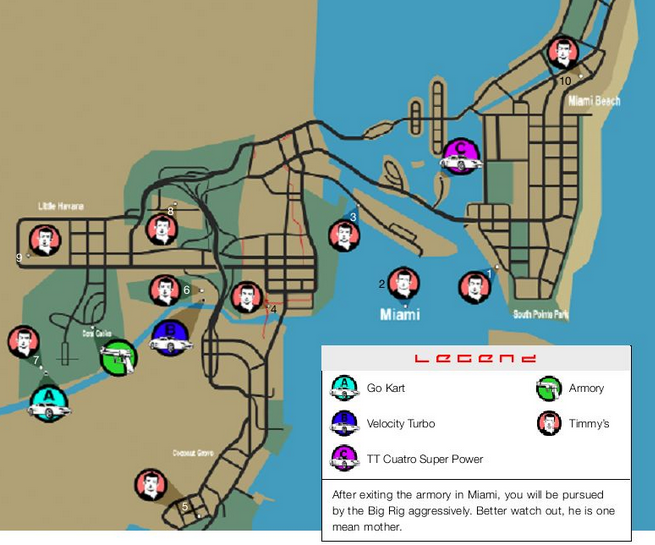 DRIVER 3 Карта секретных мест в Майами (Тимми Вермишелли,автомобили и тд)