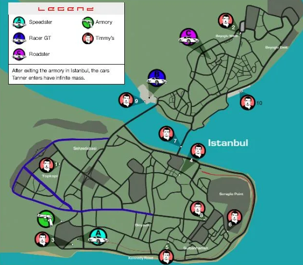 DRIVER 3 Карта секретных мест в Стамбул (Тимми Вермишелли,автомобили и тд)