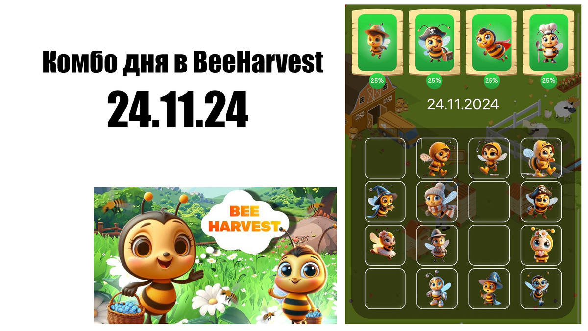 Чтобы забрать сегодняшнее комбо в BeeHarvest выбираем пчёл под номерами: 1-7-11-13. Подробнее на фото: