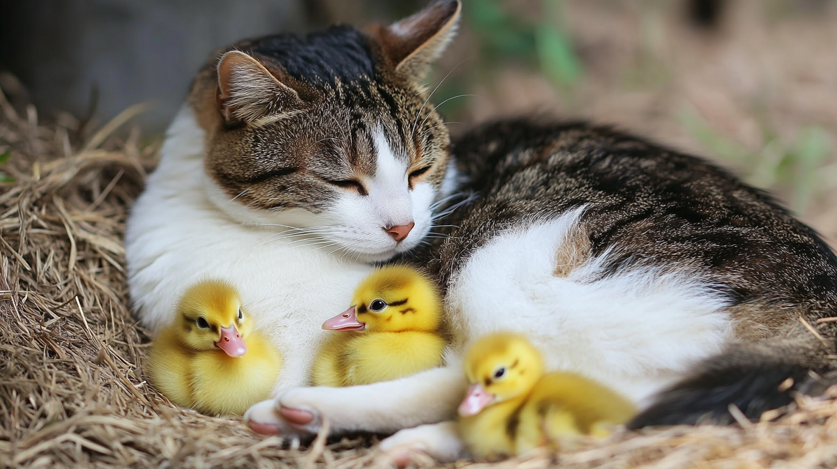 На одной уютной ирландской ферме, утопающей в зелени, случилась история, которая подкинула бы пару поводов для размышлений даже Дарвину. Ронан и Эмма Лалли, владельцы этого райского уголка, решили разнообразить свой небольшой скотный двор утками. Купили они несколько яиц, приготовили уютное гнездо, чтобы дождаться, пока малыши вылупятся. Но дальше началось нечто невообразимое. Однажды, зайдя проверить гнездо, Ронан обнаружил пустые скорлупки. Радоваться нечему: утята исчезли. А когда рядом появилась кошка по имени Дэлла, спрыгнув с каменной стены, всё стало ясно… или нет? Кошка недавно стала мамой трёх котят, так что ожидания от её реакции были скорее гастрономические. Но тут началась совершенно другая история. Через шесть часов поисков, когда эмоции прыгали от надежды до безысходности, пара нашла утят в самом неожиданном месте — у Дэллы. Не то чтобы она их украла, нет. Она лежала в своей коробке с новорожденными котятами и… утятами. Но один малыш-утенок оказался у Дэллы в пасти. Кошка