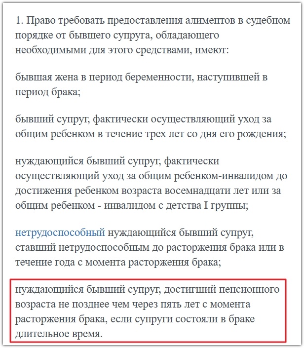 Кстати, если вы вдруг нашли себя в этом списке и хотите поиметь с бывшего супруга, придётся самому доказывать "обладание необходимыми средствами для взыскания алиментов" и "длительное время".