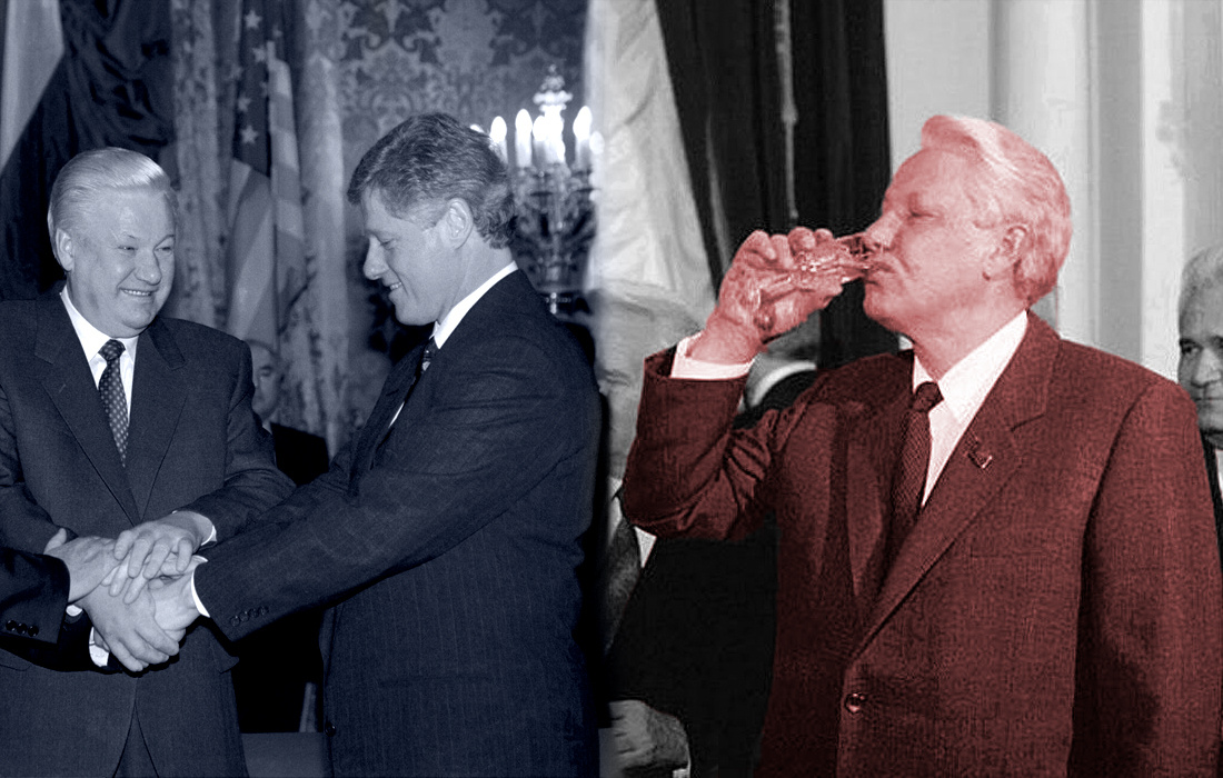 Борис Ельцин, первый президент независимой России запомнился гражданам нашего государства, как сильно пьющий человек. Обязательными застольями сопровождались практически любые значимые действия первого лица государства. Видели это не только россияне, над Ельциным (и над Российской Федерацией) откровенно насмехались во всем мире.