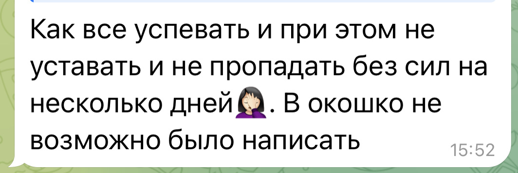 Так продолжаться долго не может. Поэтому сейчас у меня есть мои собственные приемы, как я выполняю ежедневные задачи, чтобы не выгорать и не падать без сил каждый день.