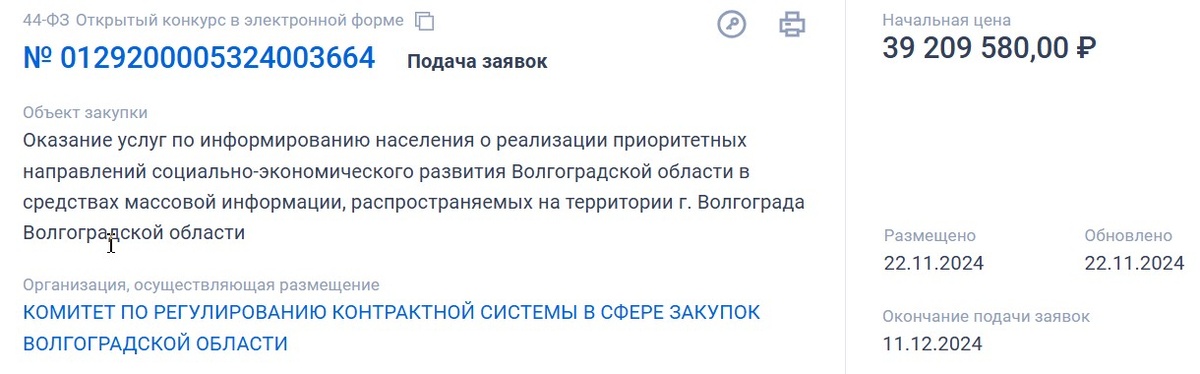 В Волгоградской области чиновники готовятся к масштабной информационной кампании по освещению успехов региона в социальной сфере и экономике в 2025 году. Потратить на эти цели из бюджета готовы более 39,2 млн рублей, или 3,2 млн рублей месяц.