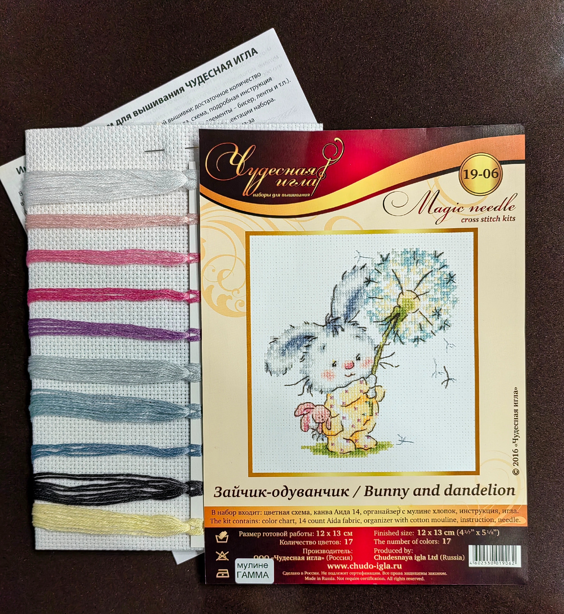 Приветствую, друзья! Сегодня покажу вам финиш процесса в, казалось бы, не свойственной для меня тематике😜 Вот такой набор "Чудесная игла" попался в мои руки 😊 Попался, конечно, не случайно, а после долгого поиска подходящего сюжета для детского альбома. Я пересмотрела тонну мимимишных дизайнов, увидев этого зайчонку, мое сердце растаяло 🥰 Более того, у производителя этот зайчик представлен в серии милых дизайнов с данным героем, а мне как раз нужно несколько сюжетов для оформления. В наборе: канва Аида 14, нитки гамма (с большим запасом), иголка, цветная схема. К слову о схеме - можно написать производителю на электронную почту (или сделать запрос на сайте), и вам пришлют схему в формате saga (для приложения Сага) и dize (для Paradise). Что интересно, но файл в формате dize открывается только в платной версии приложения🤷♀️ То есть если бы у меня не было Саги, то воспользоваться электронной схемой я бы не смогла (у меня стоит бесплатная версия). Канву я заменила на равномерку (M