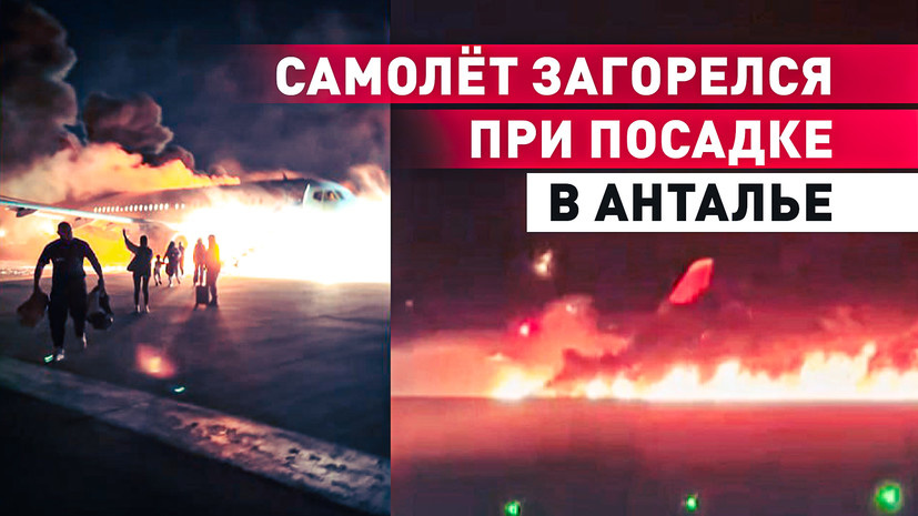Самолёт с пассажирами загорелся при посадке в аэропорту Антальи — видео