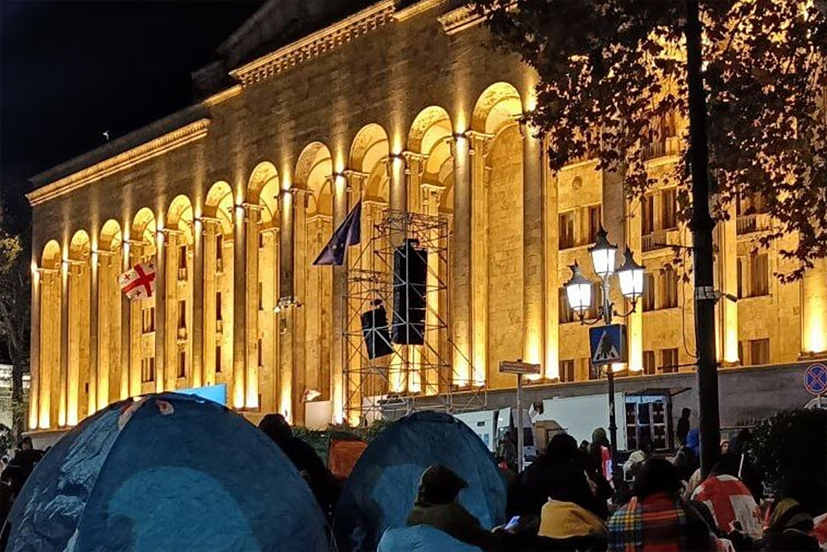 Некоторые участники акции к 1:00 понедельника разместились на скамейках и на крыльце здания напротив. Полиция наблюдает за ситуацией. Сторонники грузинской оппозиции, которые не признают результаты парламентских выборов, после полуночи установили палатки около парламента страны. Некоторые участники акции к 1:00 понедельника разместились на скамейках и на крыльце здания напротив. Полиция наблюдает за ситуацией, передает РИА Новости. Оппозиция ранее анонсировала на воскресенье, 24 ноября, марш к парламенту и митинг перед зданием. Планировалось, что митингующие останутся у парламента до понедельника, когда пройдет первое заседание депутатов в соответствии с результатами выборов. ЦИК Грузии 16 ноября опубликовал протокол прошедших 26 октября выборов, согласно которому победила правящая партия «Грузинская мечта». За нее проголосовали 53,93% избирателей. Партия получила 89 мандатов из 150 в парламенте. В законодательный орган также прошли четыре оппозиционные партии, однако они не признают и