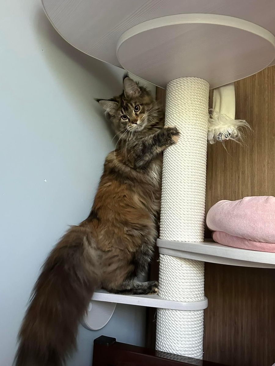 На фото наша Илаша (Woolen Tails J’Woodney Ilana) и ее любимая высокая когтеточка, точнее комплекс, где можно и поточить ноготки, и поиграть, и полазать, и поспать, у нас их несколько