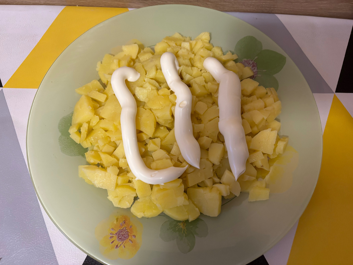 Необходимые ингредиенты: Картофель - 5 штук Луковица - 1 средняя Грибы (шампиньоны) - 300 грамм Ананасы консервированные - 1 банка Копченная курица - 400 грамм Яйца вареные - 5 штук Сыр - 100 грамм Майонез Первый слоем выкладываем вареный картофель порезанный кубиками и смазываем майонезом Следующий слой - обжаренные грибы с луком, также смазываем майонезом 3 слой - копченная курица и майонез 4 слой - ананасы (я добавила половину банки, но можно и побольше, чтобы добавить салату сладкий вкус) и также смазываем майонезом 5 слой - белок, натертый на терке и смазанный майонезом 6 слой - сыр, тоже трем на терке и смазываем майонезом И последний слой - желтки, трем на терке и посыпаем сверху. Получается очень вкусный салат и сытный. Приятного аппетита 😋