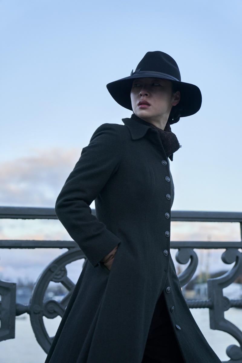 Чон Ё Бин описывает свою героиню как женщину, чья жизнь — это борьба, где она не позволяет себе ни малейших сомнений. В кадре её можно увидеть в строгом черном костюме с приглушенной шляпой, создающим эффект скрытности, но одновременно подчеркивающим её внутреннюю силу и решимость. Это визуальное воплощение сдержанной мощи идеально соответствует характеру Гон Бу Ин.