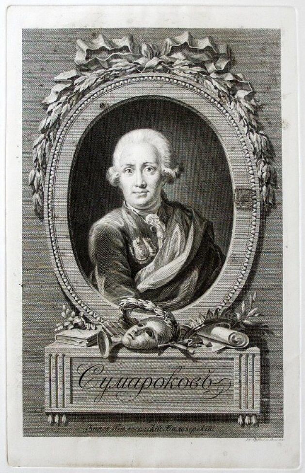 Таким — горласто-бешеным, благородно-просвещённым, кичливым и пронзительно целеустремлённым — покинем здесь «отца», ценностного основателя сентиментальной культуры русского театра: Александра Петровича Сумарокова.