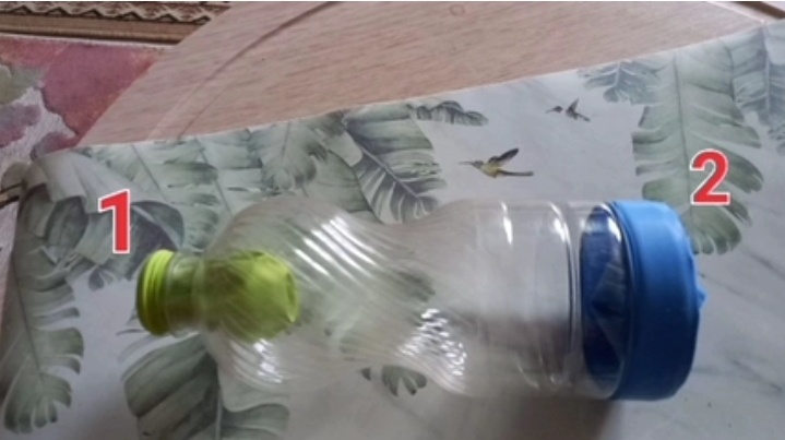 Пластиковая бутылка - простой предмет, который помогает на уроках физики показывать простые опыты. Наполним ее водой до определенного уровня. Отметим метку. Поместим в морозилку на несколько часов. Вода перейдет в агрегатное состояние - лед. Мы увидим, что уровень воды - льда поднимется выше метки. Зададим вопрос ученикам - почему? Покажем на примере бутылки, - как человек дышит. Возьмём шарики воздушные, лучше шарики из тонкой резины. Отрежем узкую часть этих шариков и натянем на дно бутылки и горлышко. Вот, что мы получим: Внутри бутылки воздух и снаружи воздух, но снаружи воздух с атмосферным давлением, то есть давление столба воздуха, который простирается над землёй где-то на высоте 30 километров. Дно бутылки - голубая резинка, горлышко - зеленая. Случай (А). Растянем резинку голубого цвета и увидим следующее. Если резинка голубого цвета растянута вовнутрь бутылки, то зелёный шарик надувается. Случай (Б). Если растягиваем голубую резинку во внешнюю сторону, то мы вид