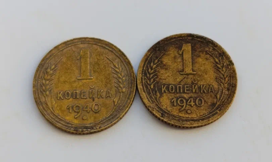 Завалялось у меня две советских копеечки 1940 года. Вот такие: Обе монетки вроде бы перспективны в чистке, так как видимая "гниль" отсутствует. Чищу своим традиционным способом - удаляю всё лишнее, так как мне важно, чтобы на поверхности монеты не было никаких загрязнений, а цвет был бы однотонным. Получился стандартны результат: Левая монета - более-мене нормальная, а вот правая - имеет гниль, которую сначала не было видно. Также правая монетка слегка гнутая. На реверсе левой монеты видны "царапки", которые были получены монетой при жизни (на первом фото их хорошо видно). При моем способе чистки никаких царапок не остается, так как я использую щеточки, которые мягче материала, из которого изготовлены монеты. Если оценивать монету по каталогу, то стоимость на сегодня будет 150-200 рублей. К примеру, левая монета на фото примерно дотягивает до этого уровня. Но в среднем их продают чуть дороже (если посмотреть на барахолках). Копеечку можно просмотреть и на разновидности. К примеру,