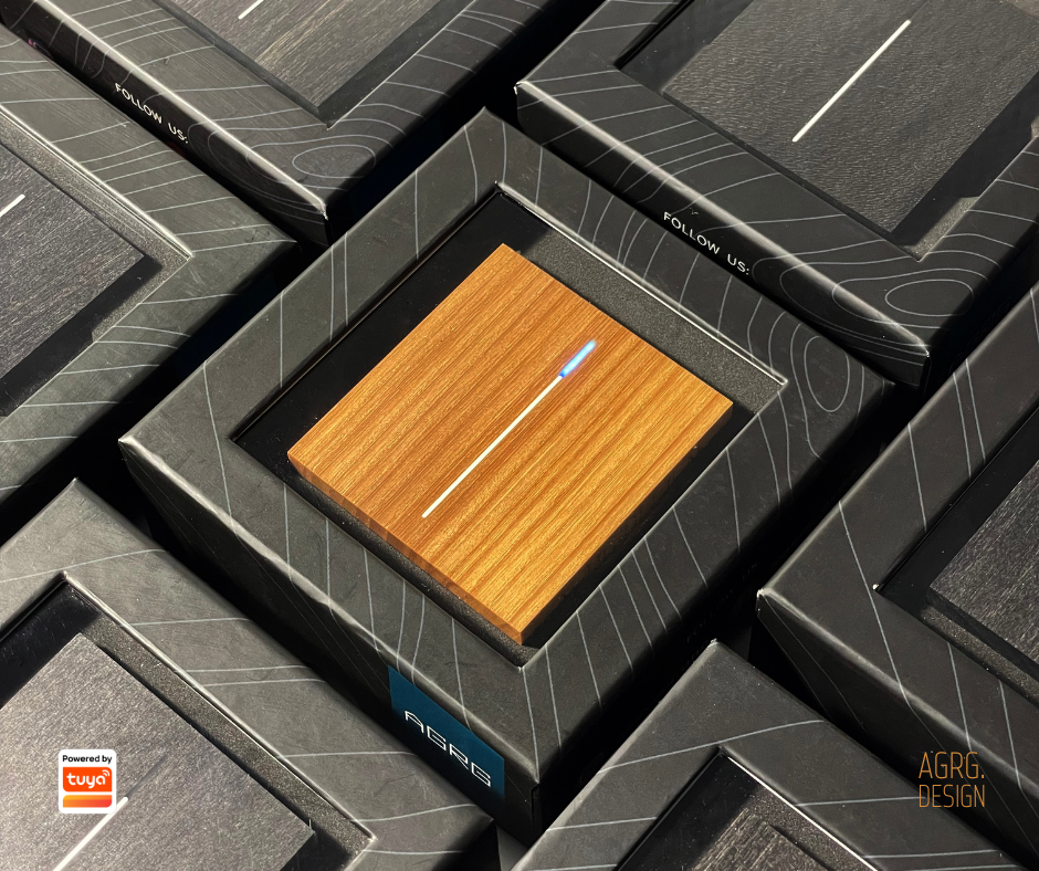 Беспроводной интеллектуальный выключатель AGRG® EYWA® BeeSwitch предназначен для управления устройствами и сценариями в системе умного дома Tuya Smart Life. Сценарный выключатель выпускается в модификациях с одной или двумя сенсорными клавишами, работает от батарейки CR2450 и требует для функционирования Zigbee-шлюз. Корпуса выключателей AGRG® EYWA® BeeSwitch выполнены из стабилизированного массива ценных пород дерева. В финальной обработке применяется кропотливый ручной труд наших столяров. Дизайн сценарных выключателей AGRG® EYWA® BeeSwitch однозначно будет сочетаться с самым требовательным интерьером и качественным ремонтом, ведь выключатели выполнены в нескольких популярных натуральных фактурах. Все выключатели AGRG® EYWA® BeeSwitch настраиваются через приложение Tuya Smart и поддерживают три различных действия на каждую сенсорную клавишу: одно нажатие, двойное нажатие и длительное нажатие. Каждое действие позволяет управлять отдельным устройством или запускать любой необходимый сц