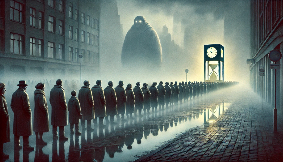Каждое утро я прихожу на площадь. Эта привычка вбивалась в нас с детства: если ты не займёшь очередь, то завтрашнего дня для тебя просто не нет. Очередь растягивалась, как вечный караван, и двигалась медленно, но неуклонно, к маленькому окошку в здании ратуши.