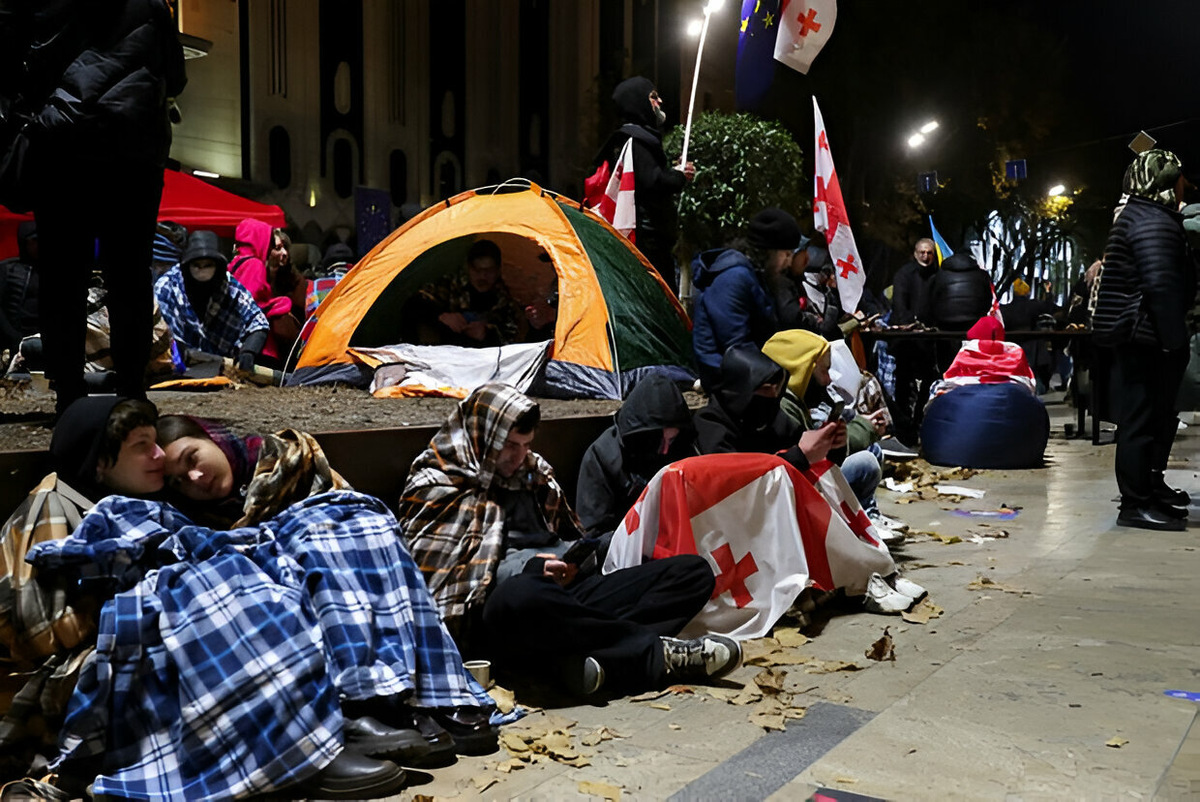 В Тбилиси оппозиционеры разбили палаточный лагерь перед зданием парламента — Видео