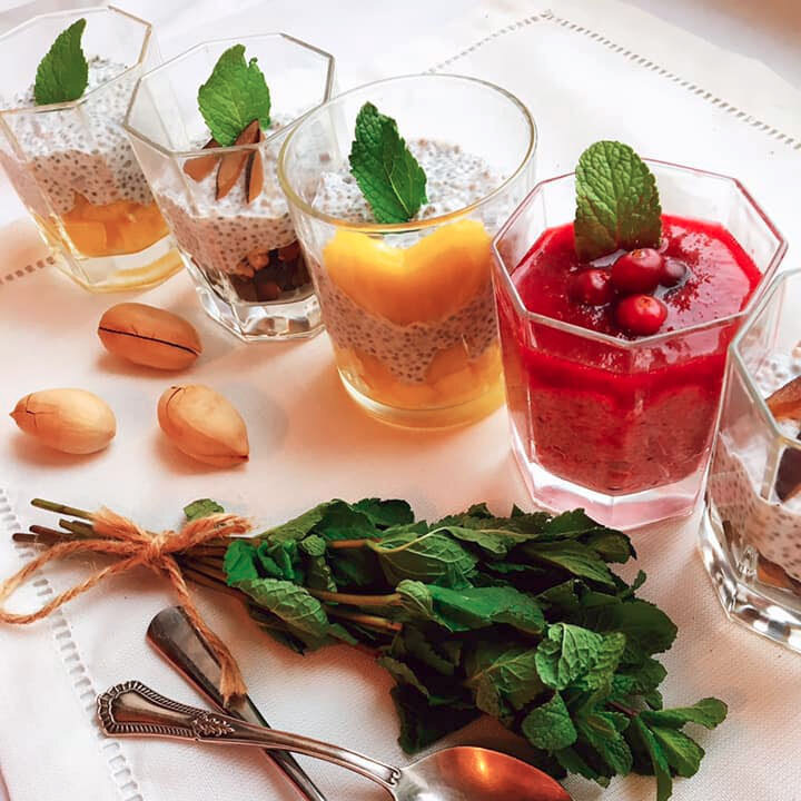 Из семян чиа получаются невероятно вкусные пудинги. Их можно приготовить с вечера, а утром выложить на подушку из ягод или фруктов. В качестве основы подойдёт любое растительное или коровье молоко, кефир, йогурт. На 1 ст. ложку семян необходимо 100 мл жидкости. Базовый рецепт: ✔ 4 ст. ложки семян чиа; ✔ 400 мл молока (для более диетического варианта возьмите 200 мл молока и 200 мл кипяченой воды); ✔ Подсластитель - по вкусу (если делаю на кокосовом молоке, никогда не подслащиваю дополнительно); ✔ Любые ягоды, фрукты, орехи для прослойки – по вкусу. Как готовим: Семена чиа заливаем молоком, добавляем подсластитель (по желанию), хорошо размешиваем, убираем в холодильник на несколько часов, в идеале – на ночь. Готовим прослойку. Фрукты режем кубиками, ягоду перетираем через сито, орехи мелко рубим ножом. Очень вкусно получается с тыквой. Тыкву порезать кубиками, потушить с 0,5 ч. л. корицы и небольшим добавлением молока, затем пюрировать и остудить. Выкладываем прослойку в красивые стекля