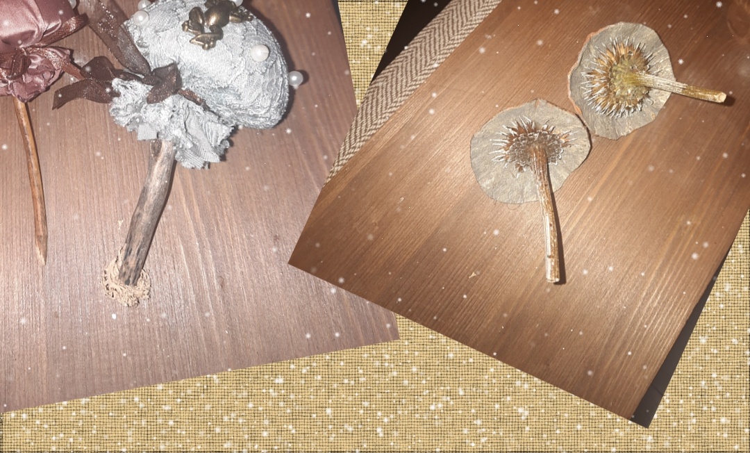 Из того что срезала можно сделать еще и ежиков. Правда такое вряд ли у кого еще дома есть. Но какие-то зонтичные сухоцветы и под снегом всю зиму стоят, можно найти интересный вариант какой-нибудь. Если уж очень "уперлось" и просто палочка это скучно.