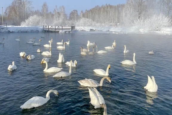 Если хочется интересных и при этом красивых зимних приключений, рекомендуем отправиться в настоящее место силы — живописный уголок России — Горный Алтай! Заваривайте ароматный, травяной чай и готовьтесь конспектировать идеи для отдыха. Будет интересно! Лебединое (Светлое) озеро Это один из самых посещаемых водоемов, где зимует исчезающий вид птиц под названием лебеди-кликуны. Ежегодно зимой сюда прилетает более 400 лебедей, на которых можно полюбоваться с оборудованных смотровых площадок. На территории России находится всего 2 места зимовки этих уникальных птиц, и Алтай — одно из них. Водоём не замерзает даже в самые суровые морозы: благодаря родникам вода в озере зимой сохраняет температуру +4…+6°С. Остров Патмос Посреди Катуни располагается маленький каменный островок с отвесными скалистыми берегами. Добраться сюда можно только по подвесному мосту. На верхушке острова в давние времена возвели храм Иоанна Богослова. По легенде Иоанн получил откровение свыше, в котором увидел 2 храма п