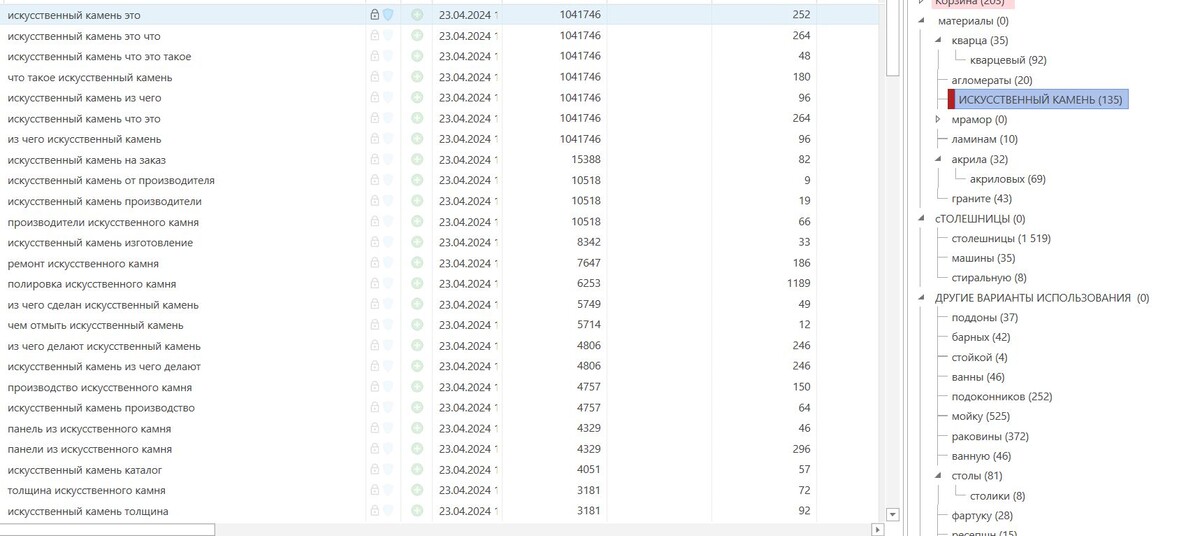 SEO продвижение понадобилось сайту, принадлежащему официальному дистрибьютору искусственного камня в России, который выпускается под известным южнокорейским брендом. Компания поставляет искусственный камень, занимается его обработкой. Партнеры компании делают разные изделия для интерьеров коммерческого и бытового назначения на заказ: столешницы, подоконники, мойки, раковины и прочее. Направление достаточно сложно с учетом того, что заказчик не хотел показывать те же цены искусственного камня разных коллекций, однако нам удалось вывести сайт на выгодные для компании позиции. Был проведен технический аудит сайта. Аудит дал возможность определить основные стадии работ для дальнейшего СЕО продвижения. В процессе аудита были выявлены направления работ, по этим направлениям в дальнейшем мы активно работали в дальнейшем, что позволило нам, на наш взгляд, достичь весьма хороших результатов. На сайте есть каталог, в нем товары распределены по сериям, однако отсутствует возможность публиковать с