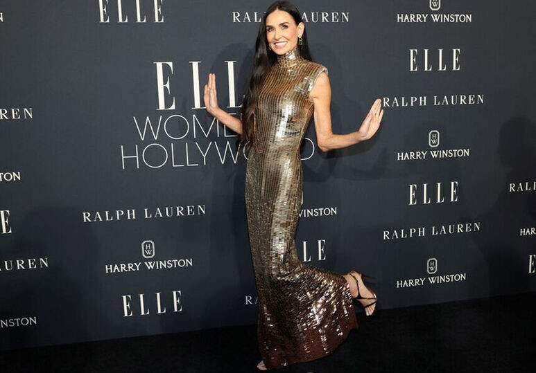 Для меня фотоотчеты с красных дорожек — неиссякаемый источник вдохновения, особенно перед праздниками. Блеск, элегантность и утонченный стиль знаменитостей помогают найти идеи для новогоднего наряда. А некоторые образы хочется повторить буквально до мелочей! Один из таких — платье Деми Мур, в котором она появилась на красной дорожке Elle Women in Hollywood. Вечер, посвященный выдающимся женщинам Голливуда, недавно прошел в Лос-Анджелесе. Среди гостей блистала и 62-летняя Деми Мур. Ее наряд мгновенно привлек внимание поклонников и модных критиков. Актриса выбрала платье макси, полностью расшитое пайетками. Главная особенность наряда — эффект омбре. Аутфит плавно переходил от золотистого к глубокому бронзовому оттенку. Лаконичный крой без рукавов, высокий воротник и блестящая отделка подчеркнули изящную фигуру актрисы. Образ дополнили босоножки на каблуке, длинные серьги и минималистичные кольца. Макияж и укладка Деми Мур тоже заслуживают внимания. Мягкие волны с пробором по центру добав