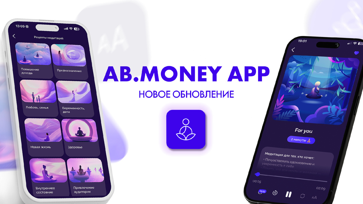 Вышло новое обновление приложения по медитациям AB.MONEY! Какие новые фишки теперь есть внутри? ТЕКСТ К КАЖДОЙ МЕДИТАЦИИ Мы часто получали от наших пользователей сообщения с вопросами о том: «в какой медитации было вот это?», «а в какой медитации были вот эти слова?» Хорошая новость — теперь у каждой медитации есть полный текст, и теперь не нужно переслушивать все медитации, чтобы найти ту самую — достаточно просто открыть текст! Текст к медитации находится в правом нижнем углу, под знаком «аА» — нажмите на него, и вам откроется текст. Чтобы убрать отображение текста — просто снова нажмите на знак «аА». НОВЫЕ РЕЦЕПТЫ В ПРИЛОЖЕНИИ Добавили 30 новых рецептов медитаций для подписки AB.MONEY PRO, по 3 рецепта в каждую из 10 сфер: доход, предназначение, любовь и семья, беременность и дети, новая жизнь, здоровье, внутреннее состояние, привлечение аудитории, красота и зависимости. Теперь участникам подписки доступен 201 рецепт медитаций на все случаи жизни! НАСТРОЙКА ВИДЖЕТА С ЗАПРОС