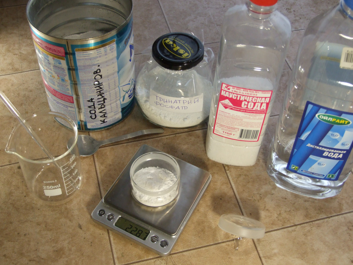 — углекислого натрия (Na2CO3, карбонат натрия, кальцинированная сода) 15…25 гр/л,