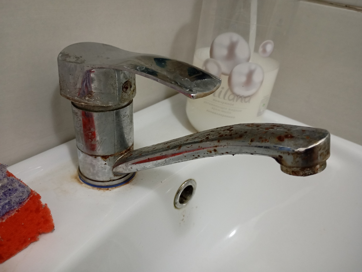 Всем здравствуйте. Прошло четыре года с момента установки смесителя в туалете и вот так он выглядит сейчас, на первом фото. Плохо выглядит, поэтому купили новый и я его заменил, второе фото. Вот так от скуки на все руки мастер, нужно клепаем, варим или сантехнику меняем. Всем здоровья, до новых встреч.