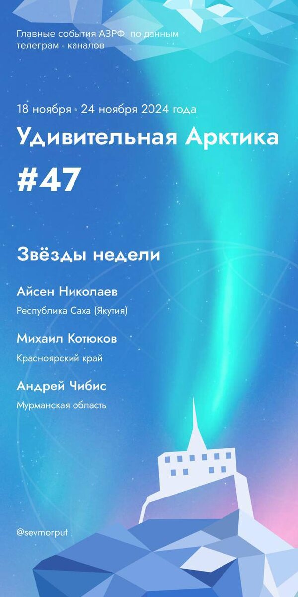 Представляем еженедельный рейтинг «Звёзды недели — Удивительная Арктика. Неделя 47». Айсен Николаев «Без корпоративов, но с праздником для детей» Органы власти Якутии вновь отказались от новогодних корпоративов, направив внимание на поддержку участников СВО. Вместо этого главными героями праздника станут дети: для них зажгут огни ёлки на главной площади республики, а также проведут Елку Главы Якутии, куда пригласят самых талантливых школьников. Михаил Котюков «Красноярск станет центром искусственного интеллекта?» На «Российской креативной неделе – Сибирь» подписано соглашение о создании центра развития ИИ в Красноярске. Новый образовательный кластер обещает привлечь молодёжь со всей России и из-за рубежа. Центр будет способствовать росту креативных индустрий, которые к 2030 году планируют увеличить свою долю в экономике региона с 2,9% до 6%. Андрей Чибис «Премия для классных руководителей» В Мурманской области учреждена новая премия губернатора для классных руководителей за вклад