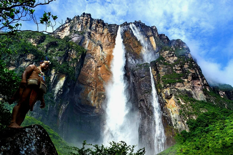 Но эта простейшая логика целиком и полностью отказывается работать в отношении водопада Анхель, который расположен в Венесуэле – вода низвергается с вершины в 979-1054 метра (в разных источниках – разная высота), отчего создаётся впечатление, что она будто бы материализуется там, на вершине, где протекать ну никак не должна!