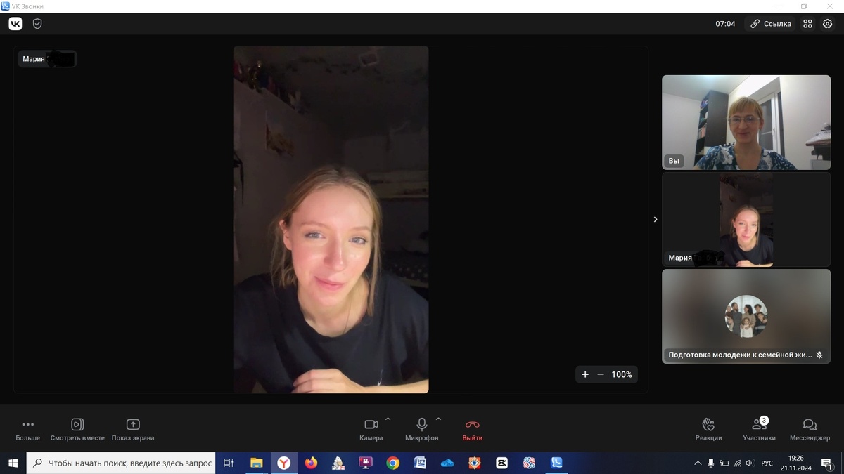 21 ноября 2024 г состоялось занятие на тему «Семейное взаимодействие». Оно прошло в индивидуальном онлайн-формате. Участница тренинга изучила теоретическую часть о формах зависимых отношений и зрелых взаимоотношениях как образце, к которому необходимо стремиться. В качестве практической части она выполнила упражнения и прошла диагностику на определение склонности к созависимым отношениям, получила индивидуальные рекомендации по изменению ситуации. Все задания выполнялись в личных конспектах, что позволило уделить больше времени обсуждениям и самоанализу. Материалы темы остались у участницы, что позволит еще раз возвращаться и повторять нужные упражнения при необходимости, а также глубже изучить теорию для дальнейшего применения на практике. Благодарим Марию за участие в занятии и активность, надеемся увидеться на других темах. Следующее занятие тренинга запланировано на 26 ноября 2024 г., оно будет посвящено теме «Семейные конфликты». Участие бесплатное, но количество мест ограничено.