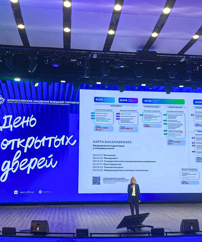На этих выходных я была на дне открытых дверей в ВАВТе и готова делиться с вами своими впечатлениями о вузе. Расположен он в приятном, зеленом районе, недалеко от Воробьевых гор. Причем на приличном расстоянии от метро — я ехала около 15–20 минут на автобусе! Но о пути забываешь, когда видишь само здание ВАВТа. Новое, красивое, стильное, с несколькими корпусами. Находиться и на территории, и внутри очень комфортно, уютно. Есть ощущение камерности, элитарности, потому что это академия, а не университет. В ВАВТе не так много факультетов: Сам день открытых дверей прошел вдохновляюще. На сцену выходили деканы факультетов и обстоятельно рассказывали о специфике учебы и внеучебной деятельности. Студенты показывали номера, танцевали. На моей практике это первый раз, когда вуз демонстрирует не только учебную часть, но и творческую жизнь, какое комьюнити сформировано внутри академии. На такое важно обращать внимание — потому что сразу можно понять, какие связи у вас появятся во время учебы и ка