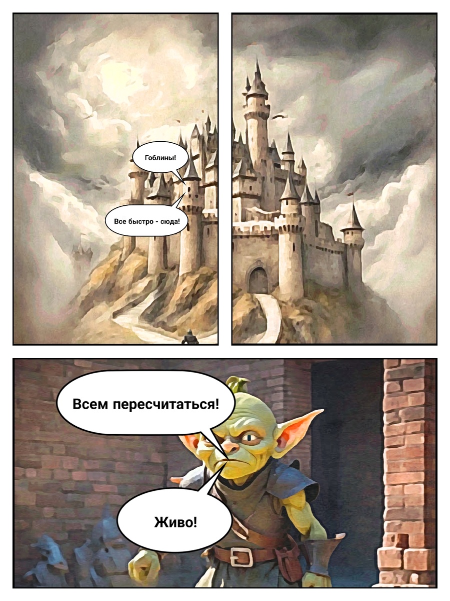 Вечереет... ... У гоблинов был тяжёлый день, и уже совсем скоро им нужно будет ложиться спать... ... все задачи выполнены, пора бы уже прилечь на боковую, что бы завтра со свежими силами приступить к новым свершениям или злодеяниям... ... как говорят сами гоблины: ... - очередной день прошёл, ну и к дракону под хвост он пошёл... Прежде всего, подготовка ко сну начинается с общей переклички, на которой каждый гоблин кричит, что он на месте, что он никуда не сбежал и вообще он доволен тем, что он сейчас в тепле, сыт, обут, одет, а не находится где-то в лесу со страшными вурдалаками или обортонями... ... ... ... ... ... Все гоблины собираются вместе, становятся (желательно) красиво, ровно и аккуратно, а не как им пришло в голову... ... это мероприятие проводит, естественно, Рыцарь. ... под его чутким руководством, каждый гоблин, услышав, что его назвали, без запинки откликается на на голос Рыцаря... ... ... ... ... ... ...... обратите внимание, насколько им идут доспехи!
