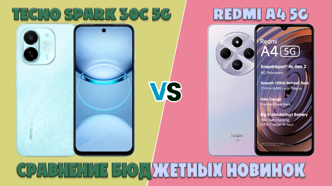 Сравнение Redmi A4 5G и Tecno Spark 30C 5G: какой из бюджетных смартфонов интереснее?