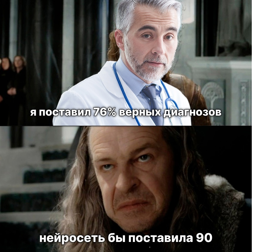 Ожидалось, что помощь ChatGPT поможет врачам в постановке правильного диагноза, однако почти никакого преимущества они не получили. По результатам эксперимента врачи, которым помогал чат-бот, поставили 76% верных диагнозов, в то время как врачи без этой помощи дали 74% верных ответов. Больше всего удивила нейросеть, которая поставила 90% верных диагнозов.