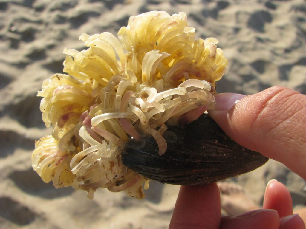 "Они желтовато-белесые, полупрозрачные, скорее даже мутноватые, упругие, вытянутой формы, словно макароны. Облепляют камни и створки ракушек, повсеместно валяются на берегах Черного моря после шторма. Видно, что их вынесло на берег волнами, то есть на суше им не место. Они из глубины. Внешне похожи на мочалку или силиконовую губку для мытья." – Вот примерно так описывают свои находки люди, обнаружившие эту странную морскую штуковину. Она не двигается, и для человека никакой опасности не представляет. Внешне эта "мочалка" похожа на актинию (и актинии в Черном море водятся), но это не она. Актиния (анемона) живая, и на прикосновения реагирует. Эту хтонь тоже можно назвать живой: пусть она не и не двигается, но состоит их десятков живых существ. Можно бросить ее обратно в море, а можно оставить на обед птицам. Для этого нужно решить, кому вы больше сочувствуете: зародышам рапаны или страдающей от него фауне Черного моря? Да, это кладка рапаны. Выглядит вот так странновато, ну уж как ес
