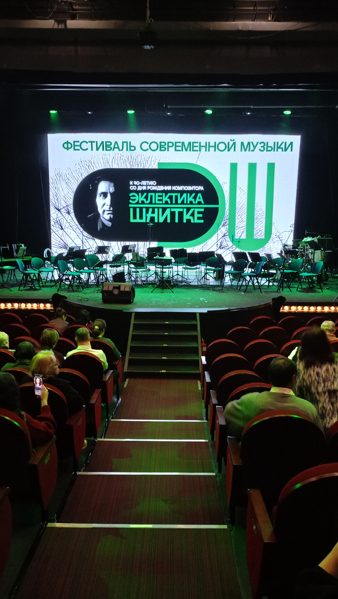 Хочу рассказать о нëм, потому-что оставил впечатления сильные! Даже если кто совсем о композиторе Альфреда Шнитке мало знает, то его музыку слышал- это наверняка! Ведь он написал музыку к таким известным кинофильмам как «Белорусский вокзал», «Горячий снег», «Агония», «Сказ про то, как царь Пётр арапа женил», «Экипаж», «Маленькие трагедии», «Мёртвые души», " Спорт, спорт, спорт"... А я сама именно из тех, кто до этого концерта о Шнитке мало знал😃. До этого концерта, на который то и пошла не о Шнитке думая, а больше хотелось сам театр ЛДМ посмотреть🤭. Про театр я рассказала вам уже. Если кто вдруг пропустил, а интересно, то ссылку дам в конце. Но концерт оказался великолепным! Оркестр национальных инструментов "Терема" просто виртуозы! И Баха и Шнитке исполняли так, что временами мурашки по коже😃. Всë это сопровождалось ярким изображением на большом экране позади сцены Настоящее шоу! А выступление Михаила Дзюдзе ( балалайка- контрабас) - это полный восторг! Заслуженный