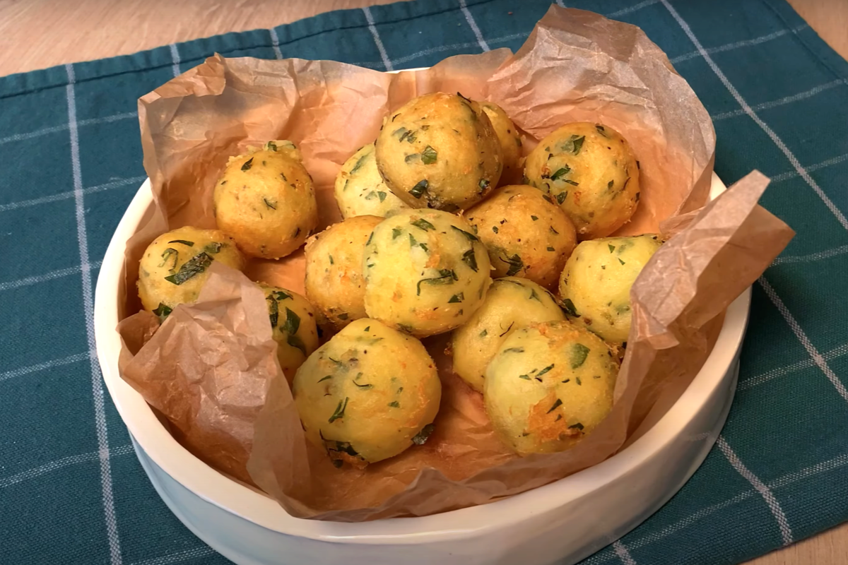 Легкая корочка снаружи и нежная текстура внутри делают картофельные шарики идеальной закуской или дополнением к основному блюду. Этот рецепт особенно удобен тем, что вам не понадобится панировка, а значит, вы сэкономите время и силы. Не придётся возиться с тягучей консистенцией из яиц, а потом убирать крошки панировки со всей кухни. Вам понадобятся всего несколько ингредиентов и минимум времени. Готовы попробовать? Тогда начнем! 1. Очистите картофель, разрежьте каждый на 8 частей. Положите их в кастрюлю, залейте холодной водой. Вода должна полностью покрывать кусочки картофеля. 2. Поставьте кастрюлю на сильный огонь. Как только закипит, убавьте огонь до ниже среднего и варите 10-13 минут. Проверьте готовность ножом. 3. Слейте воду и переложите картофель в миску. Разомните картофель в пюре с помощью вилки. 4. Петрушку мелко порубите и добавьте в картофельное пюре (можно использовать сушенные травы). Добавьте кукурузный крахмал, соль и молотый перец по вкусу. Натрите сыр на терке и добав
