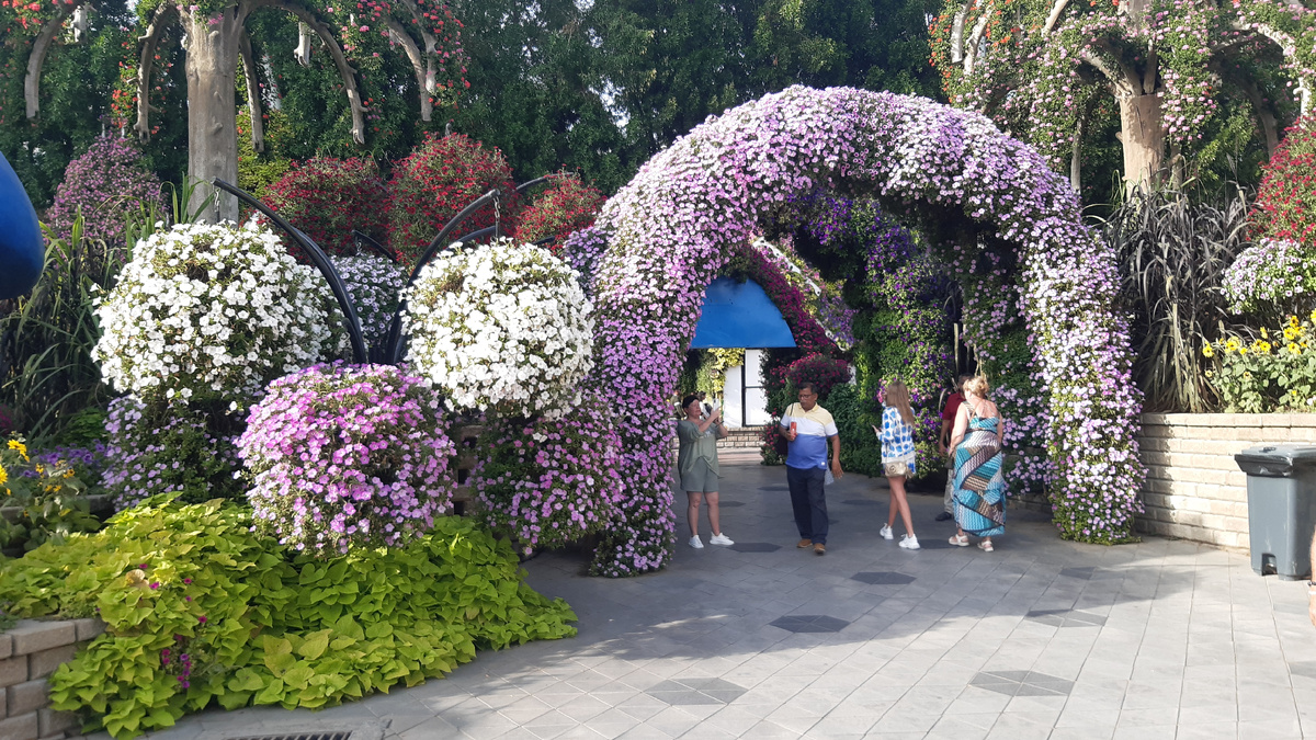 Парк цветов. Миллионы петуний как материал для творчества. По времени парк принимает посетителей ло конца мая. Зависит от погоды .В мае уже всё начинает “ гореть “ . Мы были в марте. Тонны воды для ежедневного полива, что поддерживать композиции в свежем цветущем виде. Полив капельный. Домики и замки из цветов, Боинг в натуральную величину и другие инсталляции . Разнообразие цветовой палитры впечатляет даже при приближению к парку. Петунии занимают 90% цветочного фонда. Всё это великолепие занимает более 5 га. За два часа , которые нам выделили на посещение Сада чедес ( второе название ) ма смогли пройти чуть более половины. Огромное количество туристов, которые фотографируются буквально на каждом метре. Жаль фото с телефона, не могут передать реальных впечатлений от посещения этого чудесного места.